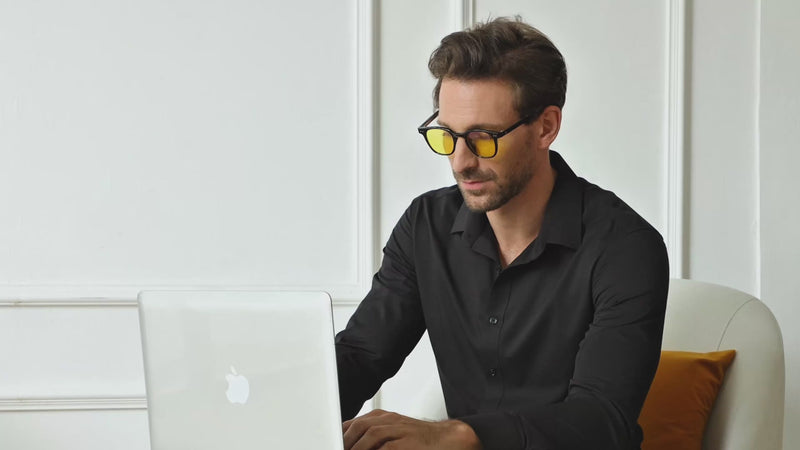 Verres certifiés filtrant la lumière bleue, conçus pour le travail, la détente et un meilleur sommeil.